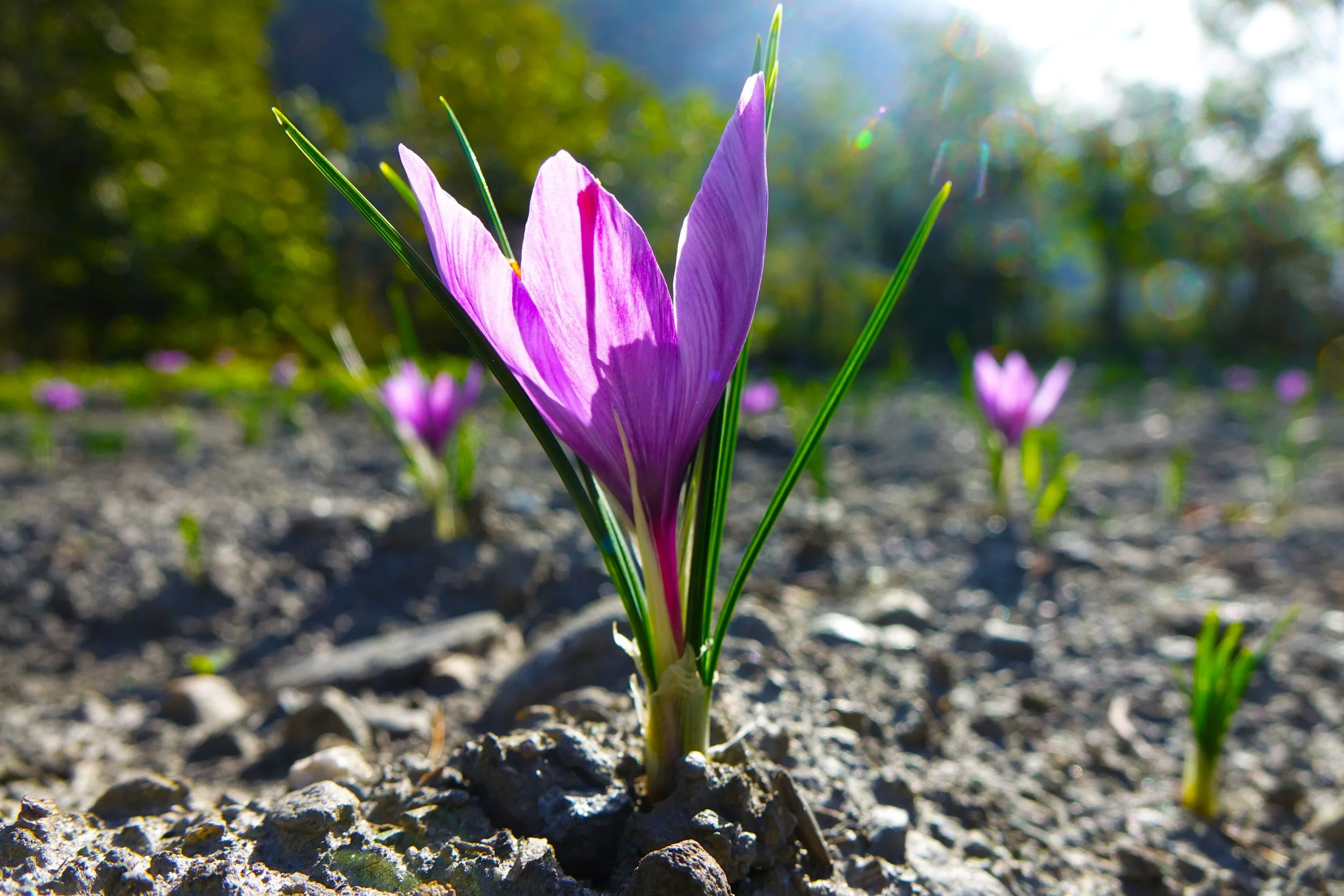 It is a small, multi-year cultivation, which allows the bulbs (or corms) to multiply naturally. Over time, organic matter is deposited in the soil, keeping it soft and improving its water retention capacity. This creates a fertile and healthy environment, rich in beneficial microorganisms, which are essential for the balanced and vigorous development of the bulbs. Every three years, the crop is then moved to new soil, so as to promote natural soil renewal and ensure harmonious growth.