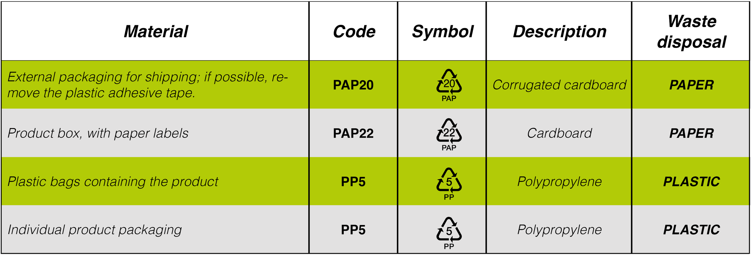 CORRECT DISPOSAL OF PACKAGING